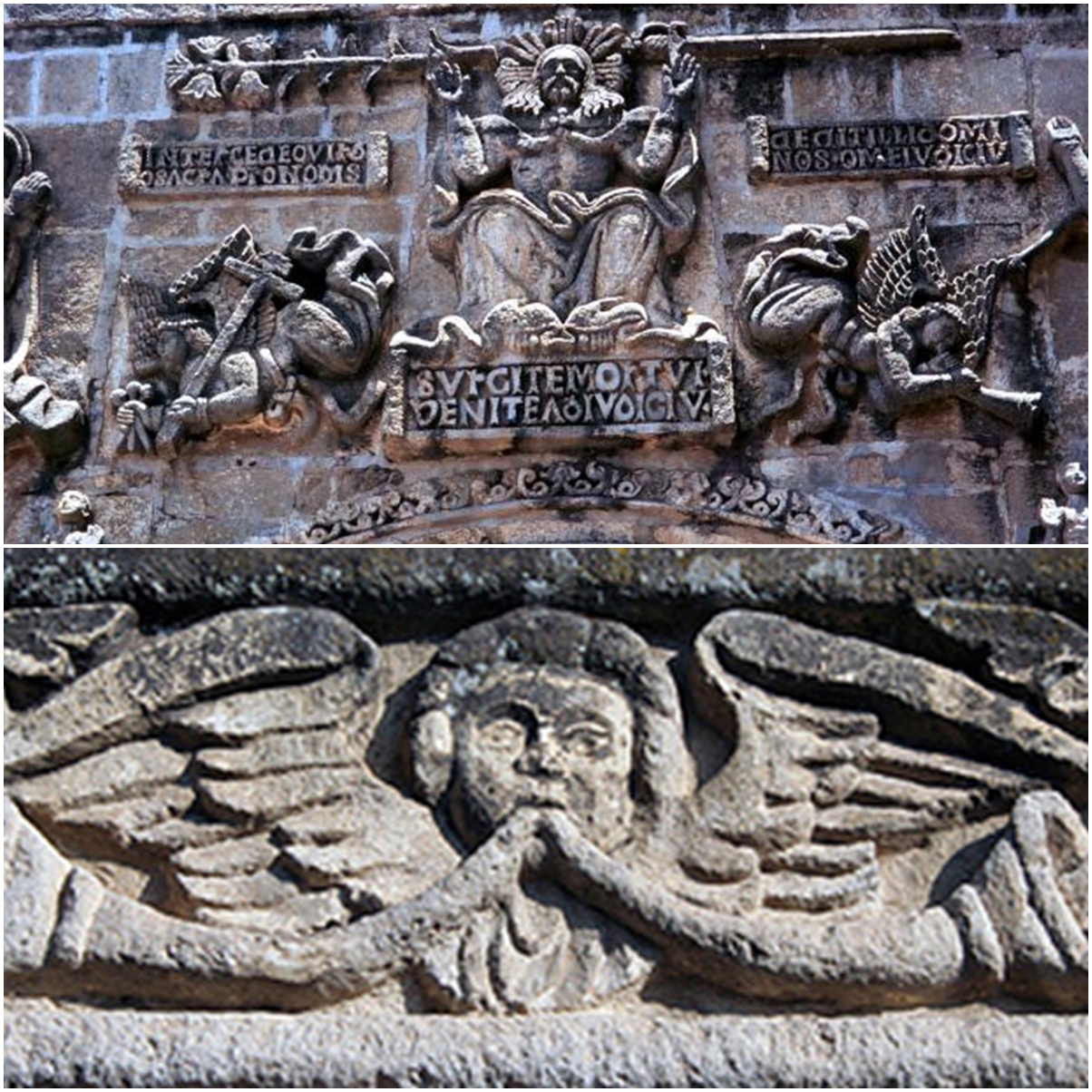Aparecen cuatro tondos con el símbolo de los cuatro evangelistas, el Tetramorfo.
