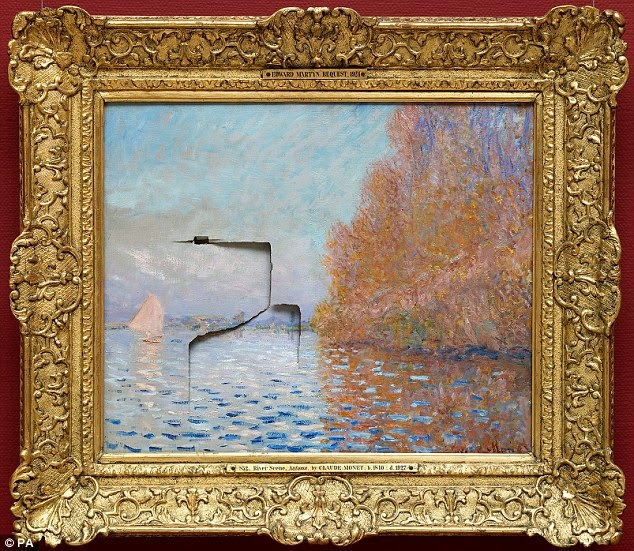Pintado en 1874, este Monet no consiguió librarse de su agresor. En 2012 un hombre asestó un puñetazo al lienzo, quedando tal como se ve en la imagen superior. Fueron necesarios 18 meses de restauración.