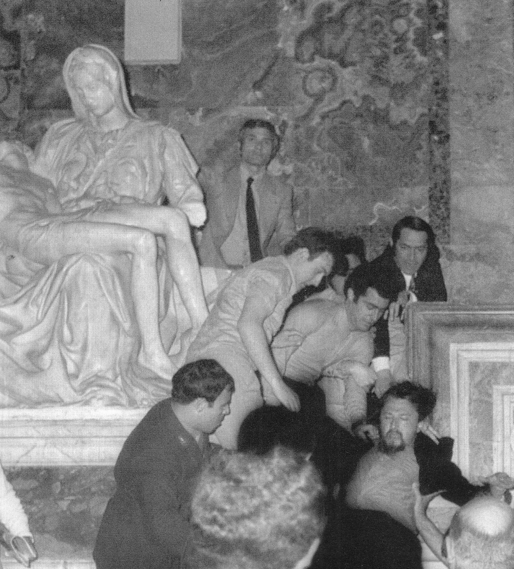 El 21 de mayo de 1972, La Piedad de Miguel Ángel es atacada a martillazos por un geólogo australiano que consiguió sortear a los vigilantes. Como consecuencia del ataque, el rostro de la Virgen queda destrozado, así como el brazo izquierdo. Se necesitó más de un año de restauración.